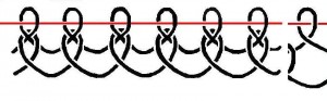 ZÁKLAD máme hotový a môžeme vytvárať rôzne ornamenty. Môžeme napr. každú druhú slučku otočit dolu.